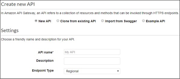 Click API Gateway and it will lead you to the screen where new API gateway can be created.