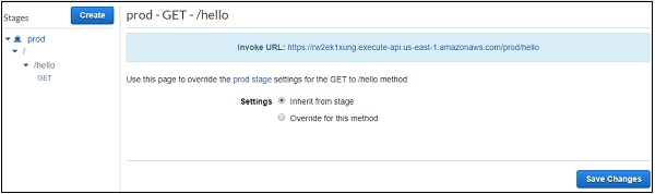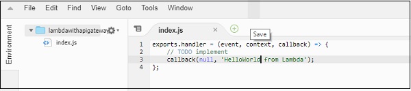 Now, save the changes in Lambda and hit the URL to see the changes. Observe the screenshot given below −