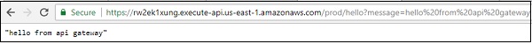 https://rw2ek1xung.execute-api.us-east- 1.amazonaws.com/prod/hello?message=hello%20from%20api%20gateway